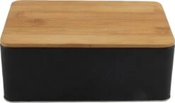 Set Van 2x Stuks Opbergblikken/bewaarblikken Zwart Met Bamboe Deksel 1,7L 19 X 13 X 7 Cm – Voorraadblikken/koekblikken