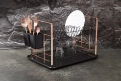 Dit prachtige afwasrek van Berlinger Haus is niet alleen praktisch maar ook een stijlvol vaataccessoire voor in je keuken. Het wordt geleverd in een mooie zwarte en rosé gouden kleur.