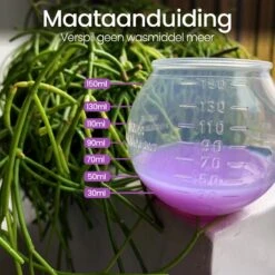 - Maataanduiding – Je kunt eenvoudig doseren tot wel 150 ml doormiddel van de maataanduidingen, hierdoor bespaar je kostbaar wasmiddel.