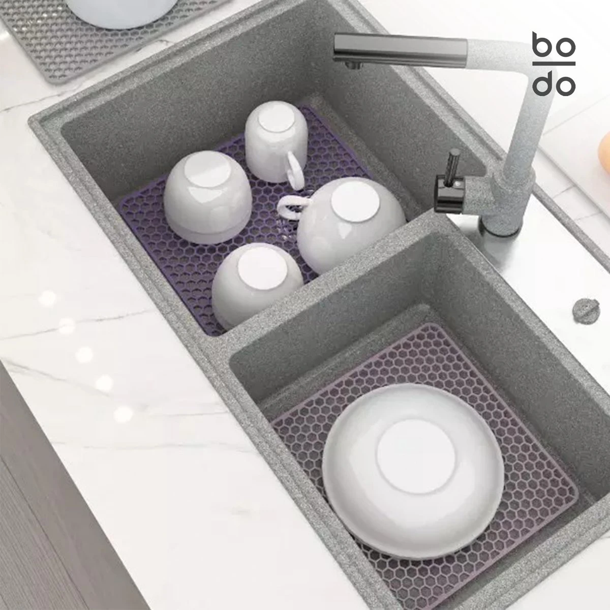 - Materiaal: Gemaakt van siliconen, onze gootsteenmat is flexibel, buigzaam en antislip.