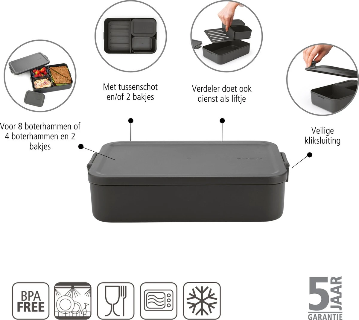 Brabantia Make & Take Bento Lunchbox Incl Bentobox – Large – Kunststof – Dark Grey
