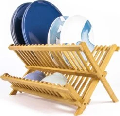 Budu Afdruiprek – Afdruiprekje Van Bamboe Hout – Afdruiprek Voor Afwas – Vaatwasrek – Keukenrek – Inklapbaar – Opvouwbaar –