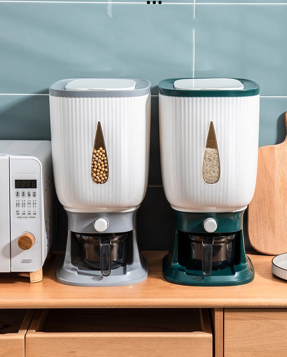 Ruimtebesparend: De rijst dispenser is ontworpen om compact te zijn en kan gemakkelijk in de keukenkast of op het aanrecht worden geplaatst. Hierdoor bespaar je ruimte en ziet je keuken er georganiseerder uit.