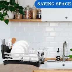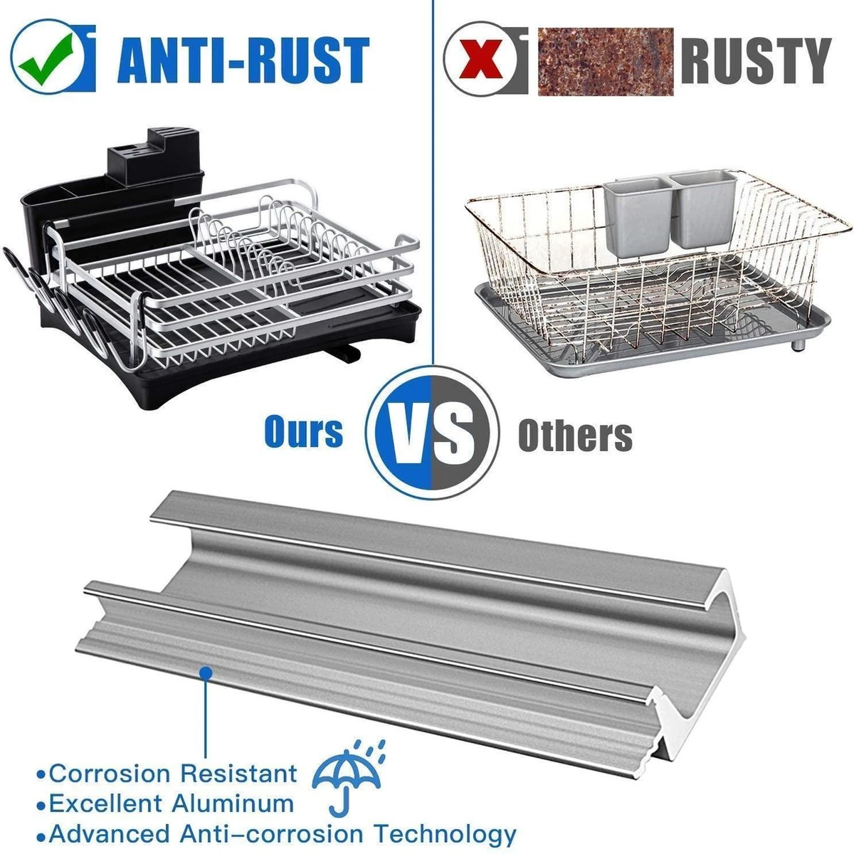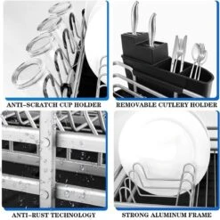 Doogo® Afdruiprek Met Bestekkorf En Lekbak Voor Keukenborden En Bestek Afdruiprek Met Draaibare Uitloop