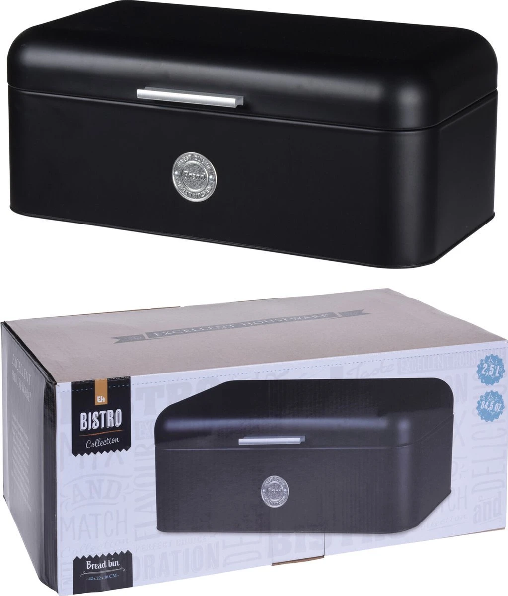 Excellent Houseware – Broodtrommel – Met Klepdeksel – Zwart – Metaal – Glans – Luchtgaten – Chique – Modern