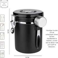 De containers zijn zorgvuldig vervaardigd van hoogwaardig roestvrij staal van voedingskwaliteit met een metalen klem. Dit is de perfecte kluis voor gemalen koffie, thee, meel, suiker, noten en bonen!