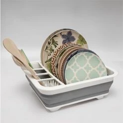 Merkloos Afdruiprek Voor Afwas – Afwasrek – Opvouwbaar – Inklapbaar – Compact – Vaatwasrek Met Bestekrekje
