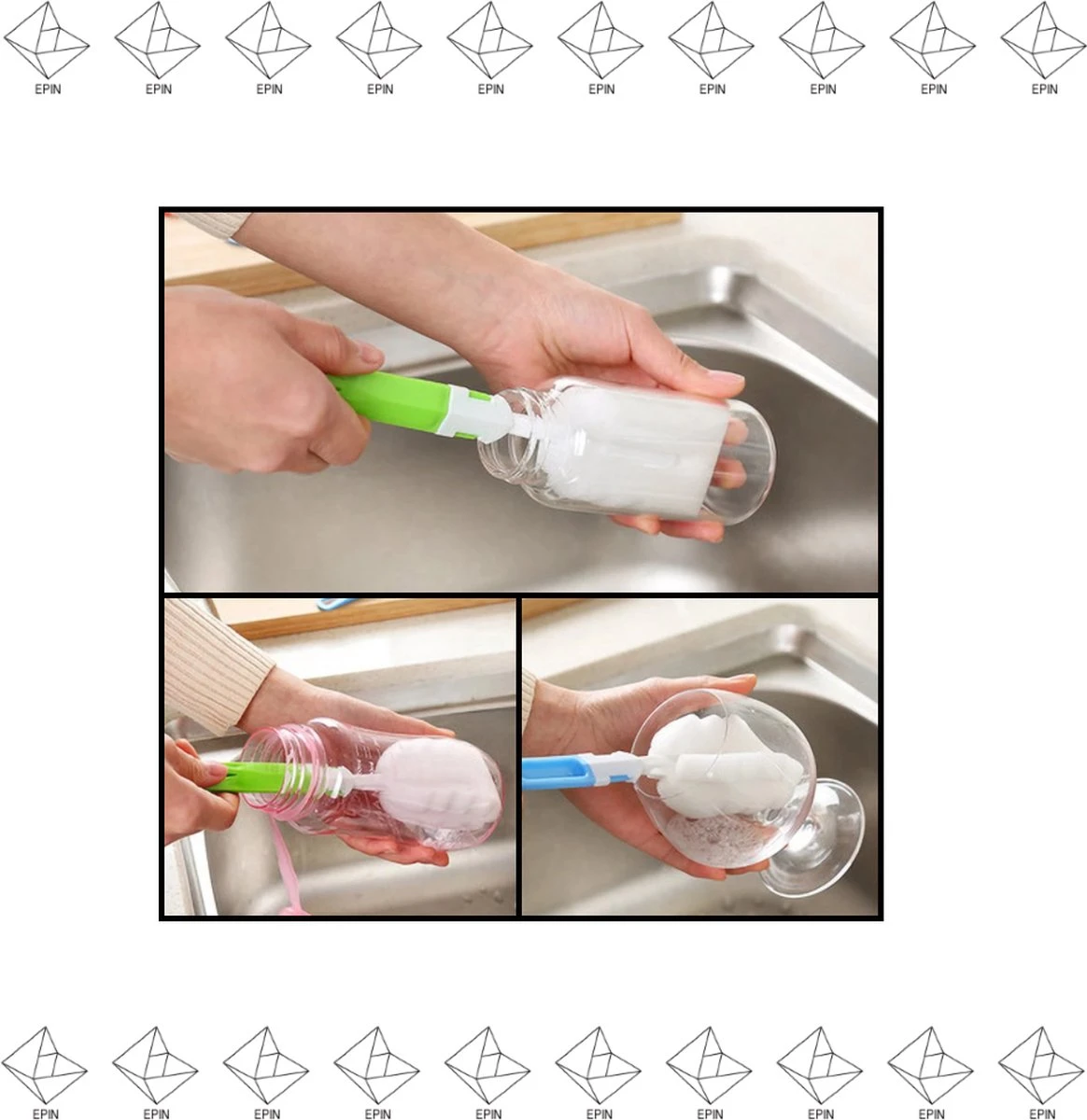 Merkloos EPIN | Glazen Spons | Fles Borstel | Drink Fles Spons | BLAUW