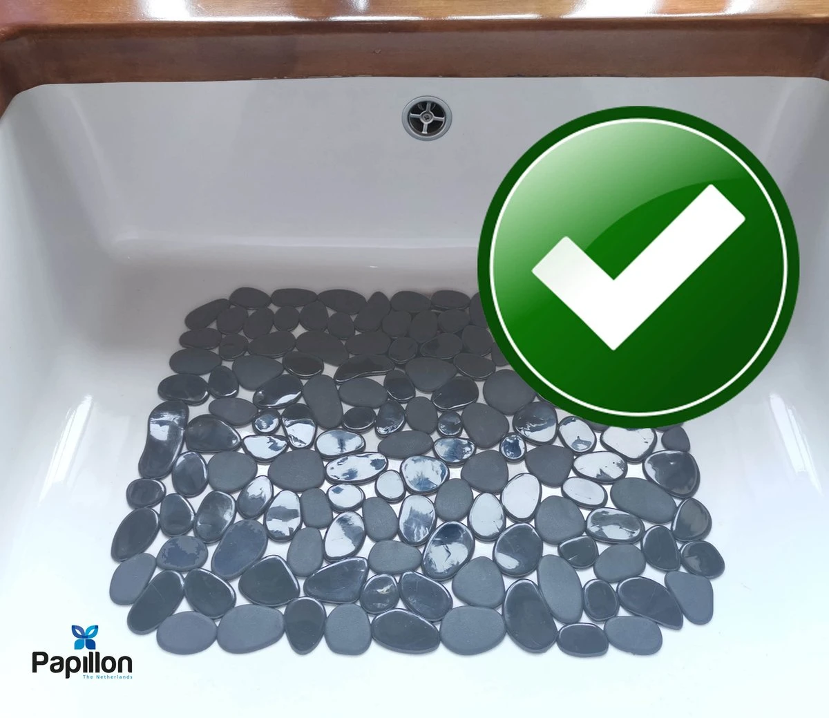 Deze grote Papillon gootsteenmat van schimmelvrij PVC is extra stevig en geschikt voor vrijwel iedere gootsteen. De afmeting is 40×30 cm, maar is eventueel ook nog op maat te knippen. Het dikke materiaal verlengt de levensduur.