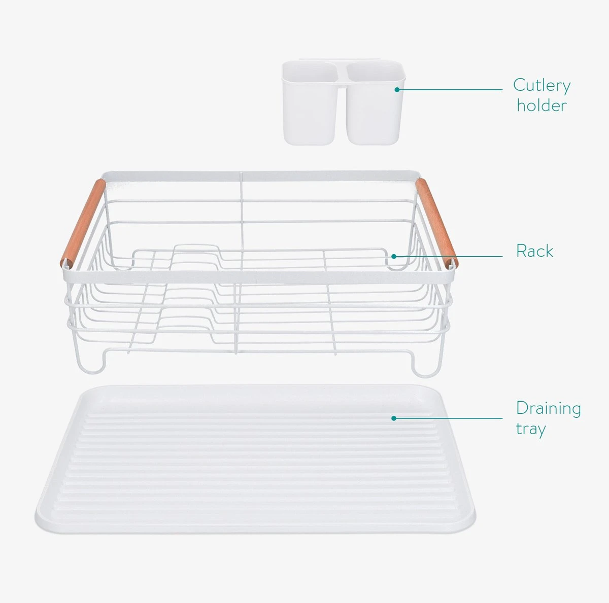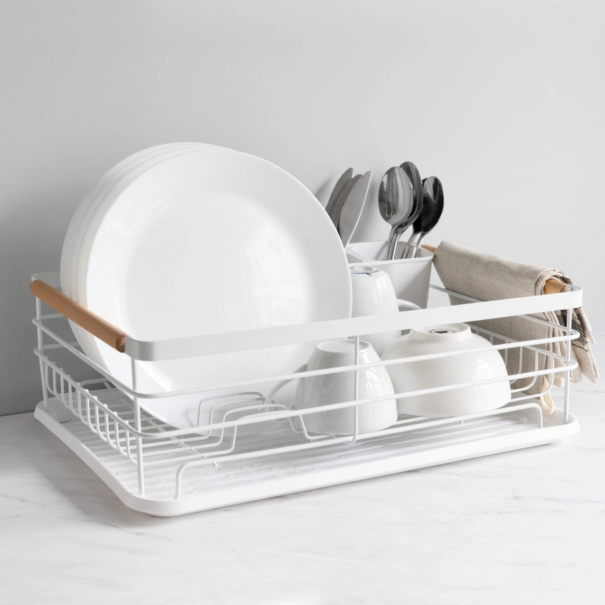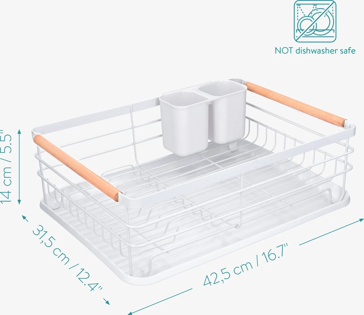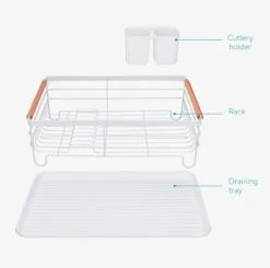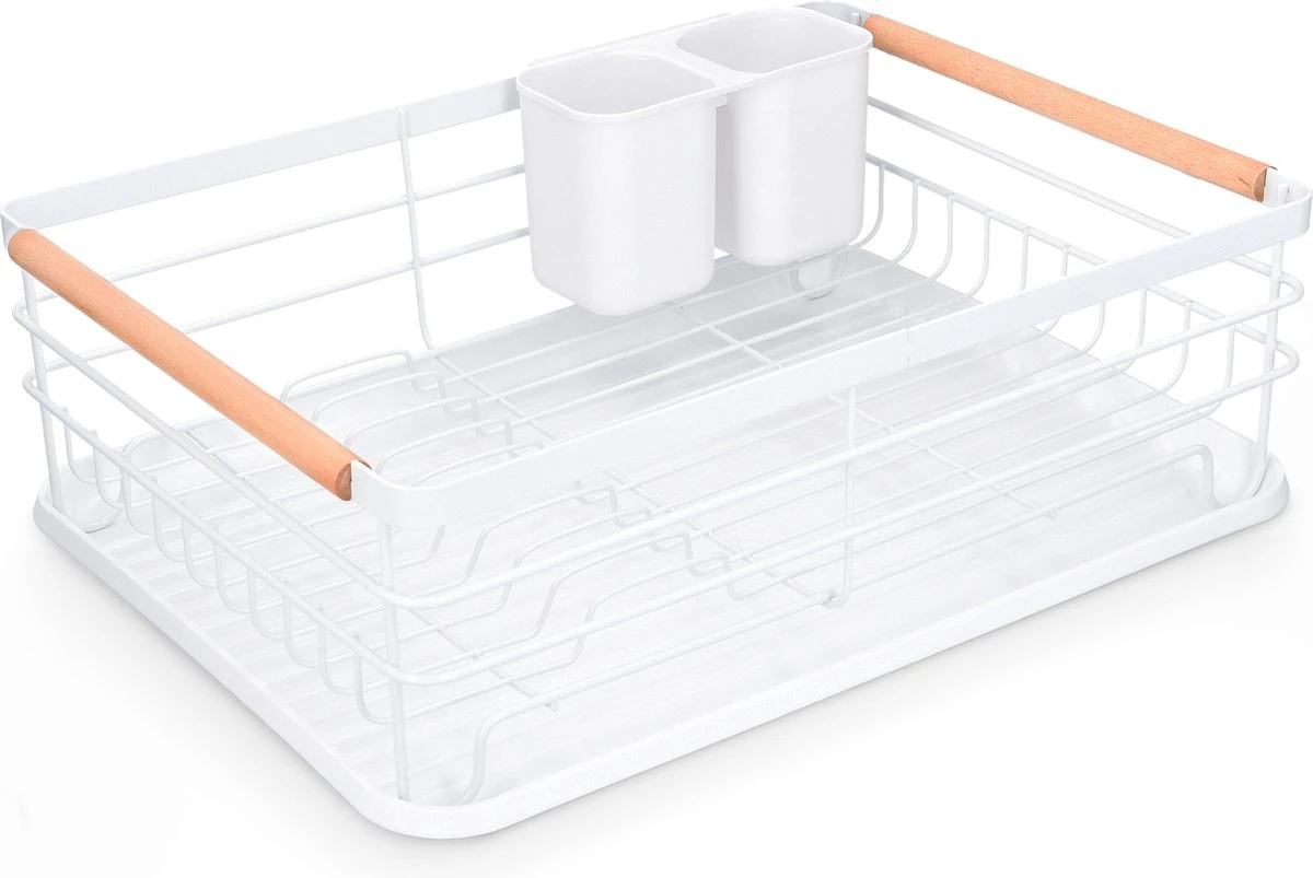 Navaris Afdruiprek Met Uitneembare Bestekhouder – Afwasrek Met Losse Lekbak – Vaatwasrek Met Plateau – Voor Bestek, Borden, Schalen En Pannen